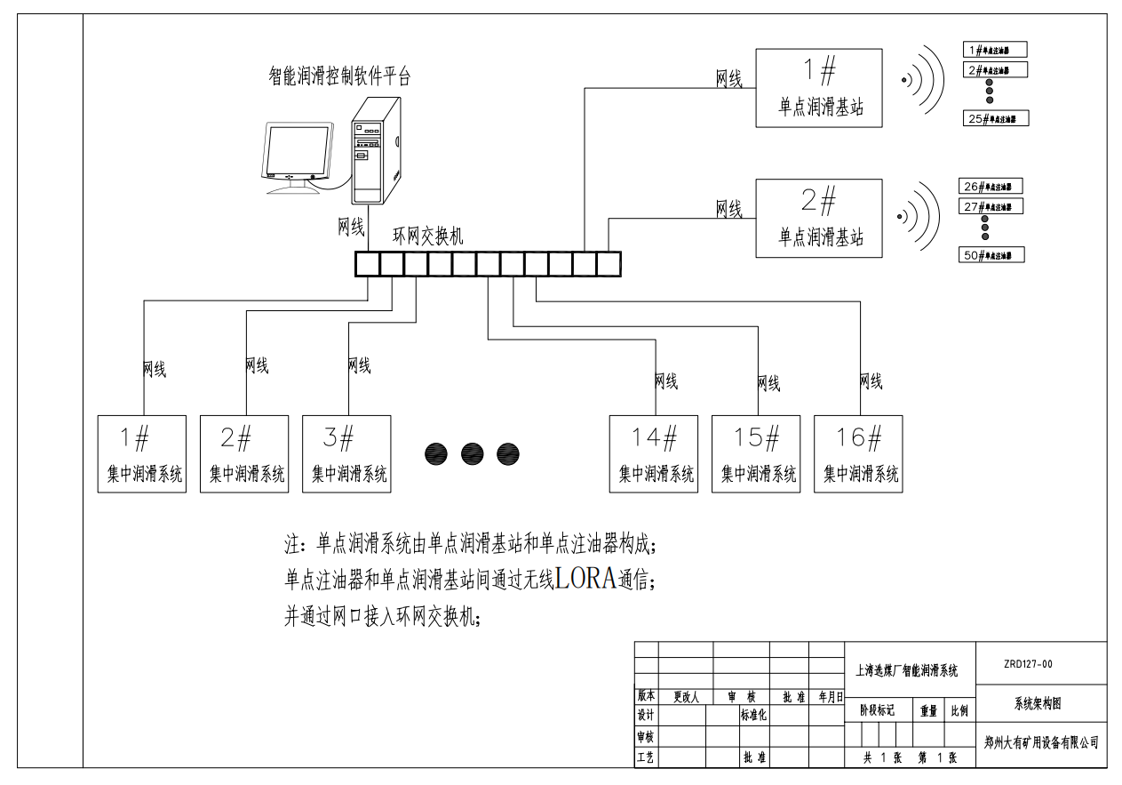针对选煤厂润滑点位多,设备集中、电机类需定期少量润滑设备多的特点,采用集中润滑系统和单点润滑系统相结合的原则,润滑点集中且润滑油量较大的区域采用集中润滑,对于润滑点分散且润滑量小(如电机等)的润滑点采用单点润滑。